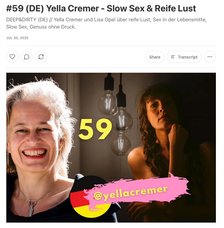 Eine Podcast-Folge mit Yella Cremer über weibliche Lust in der Lebensmitte, das Prinzip Slow Sx und warum guter Sx eine Entscheidung ist.